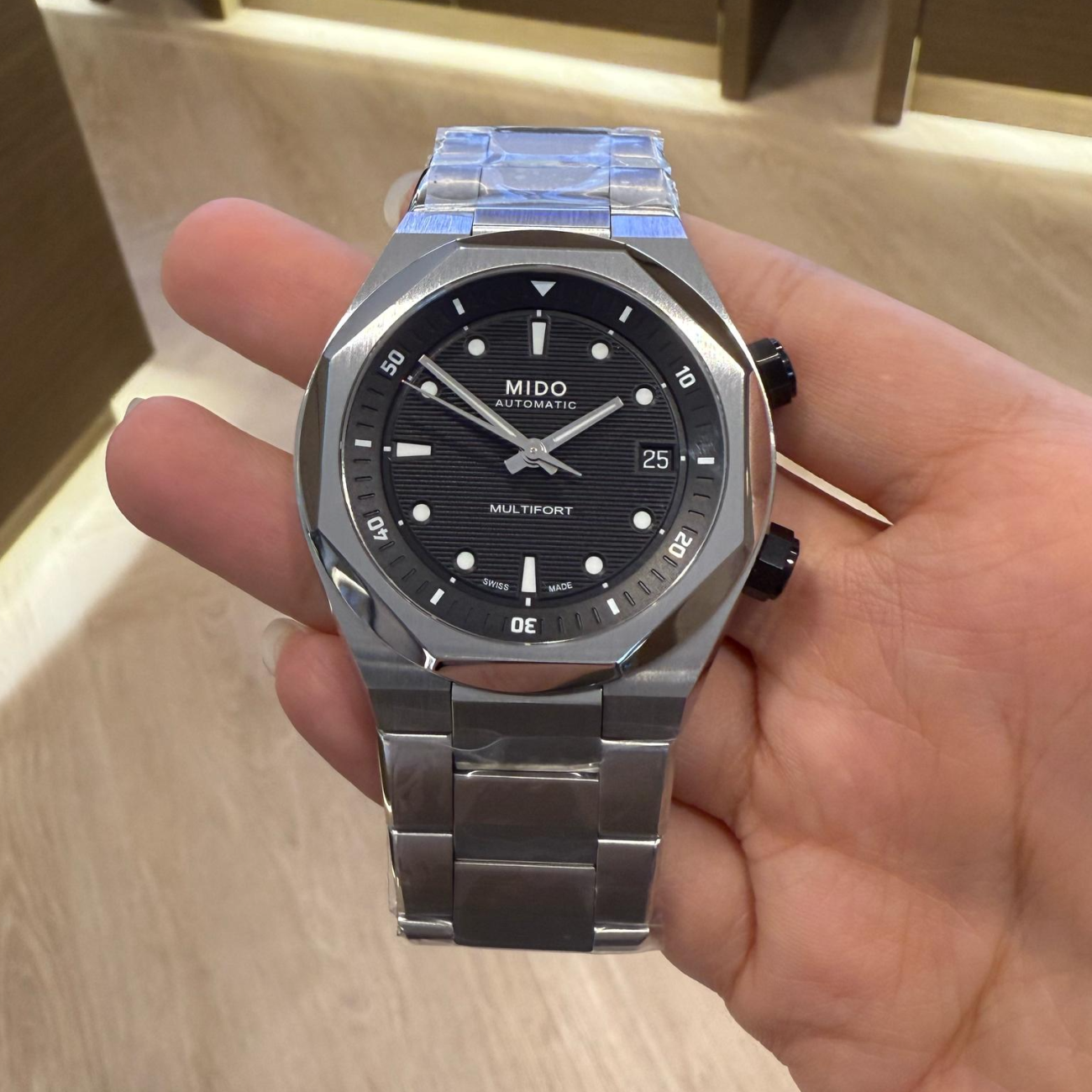 The audacity of the Multifort 8 Two Crowns changes the game! This visionary model with its octagonal bezel, is emphasised by a horizontal relief stamped dial while white Super-LumiNova® enhances the visibility of the indexes. This powerful timepiece reinvents the codes, creating a new dimension: the TECHNOMETRY, the perfect blend of TECHNOLOGY and GEOMETRY. It is equipped with an internal rotating flange, activated by a second crown located at 2 o’clock while the hours and date can be set through the 4 o’clock crown. This model houses the Calibre 72 with Nivachron™ technology, a movement specifically chosen for its slimness and exemplary reliability to meet the challenges of everyday life, now and into the future.
