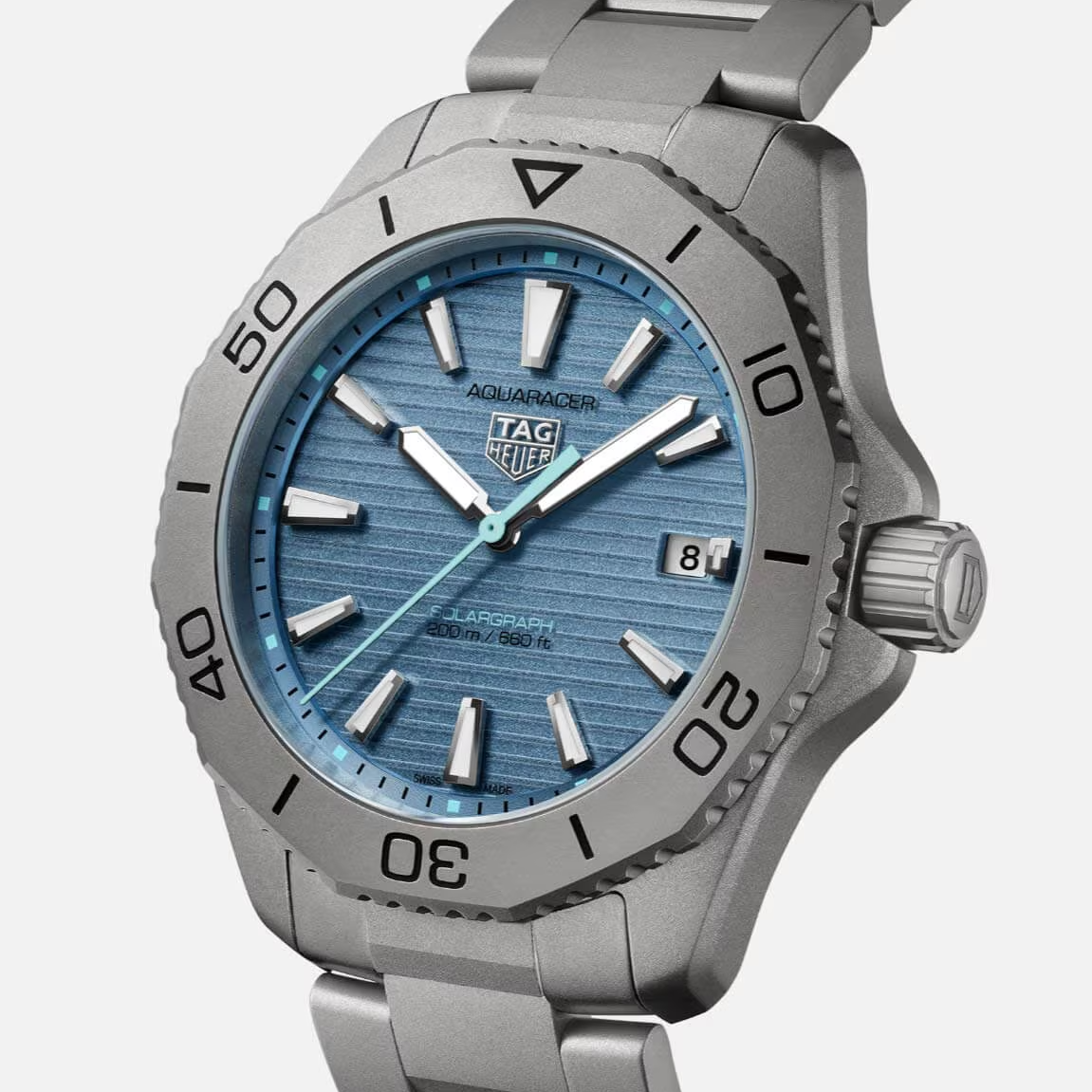 The ultimate versatile tool watch, the TAG Heuer Aquaracer Professional 200 Solargraph is built to conquer every adventure. With its lightweight titanium case, striking polar blue accents, and cutting-edge Solargraph technology, this timepiece is ready for anything.
